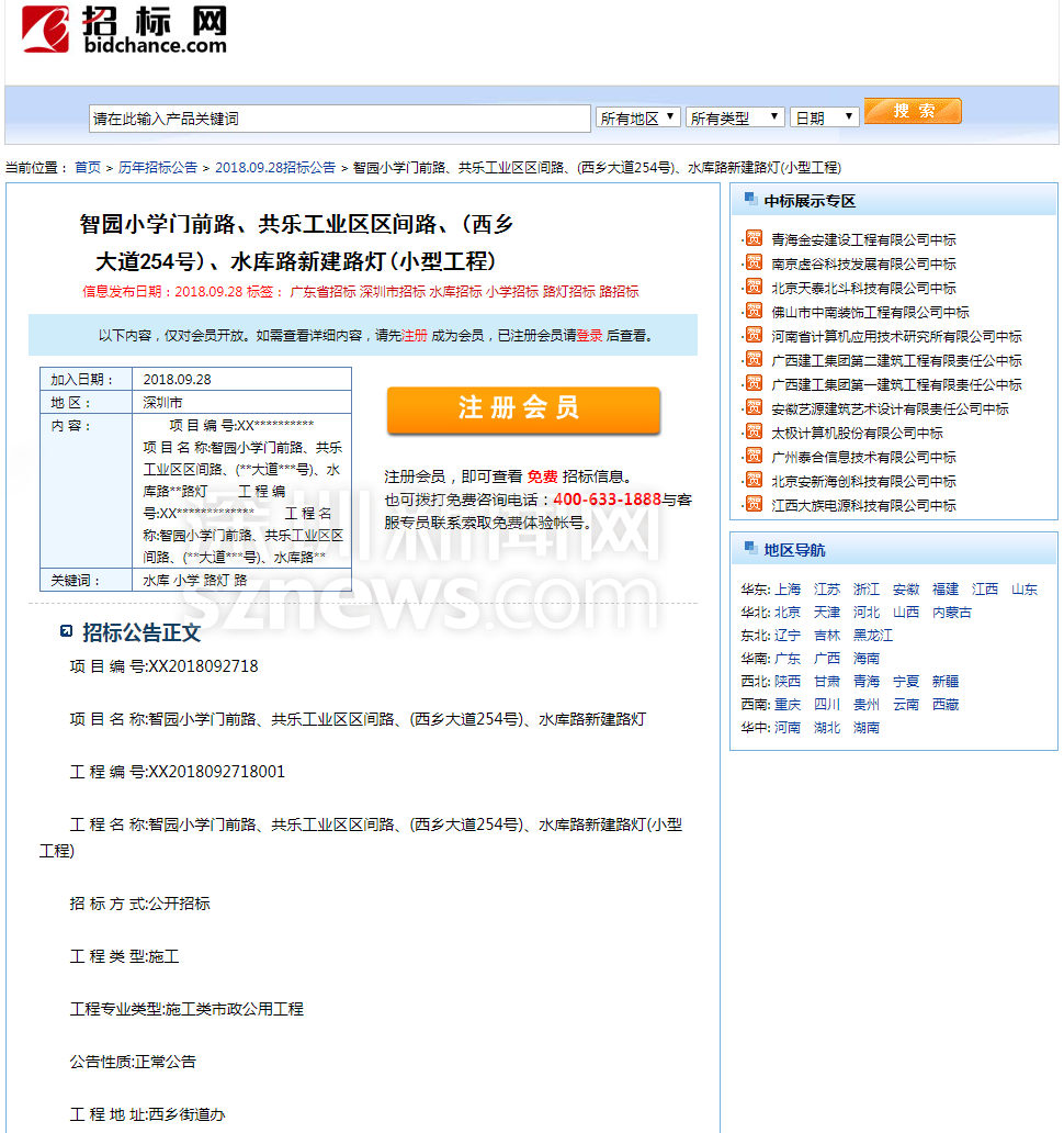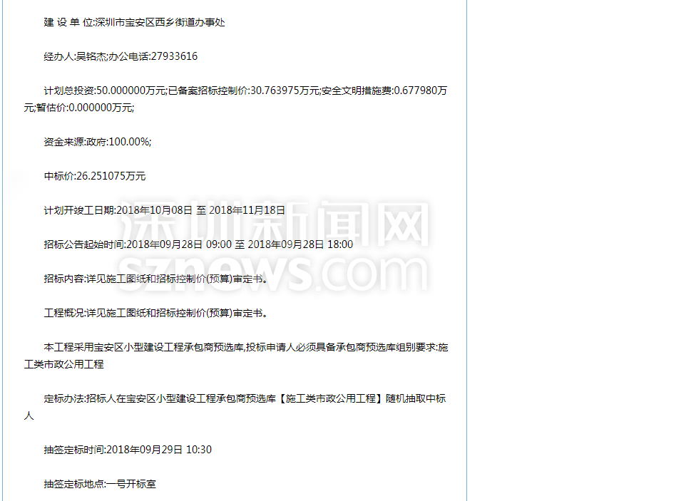 針對網友反映的情況,記者查閱相關資料發(fā)現(xiàn),寶安智園小學門前的施工工程于2018年9月28日公開招標。