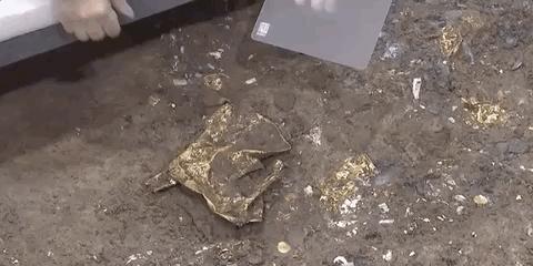 目前,三星堆遺址考古工作正在進(jìn)行中,新發(fā)現(xiàn)的六個“祭祀坑”已發(fā)掘至器物層,出土金面具殘片、鳥型金飾片、金箔、眼部有彩繪銅頭像、巨青銅面具、青銅神樹、象牙、精美牙雕殘件、玉琮、玉石器等重要文物。